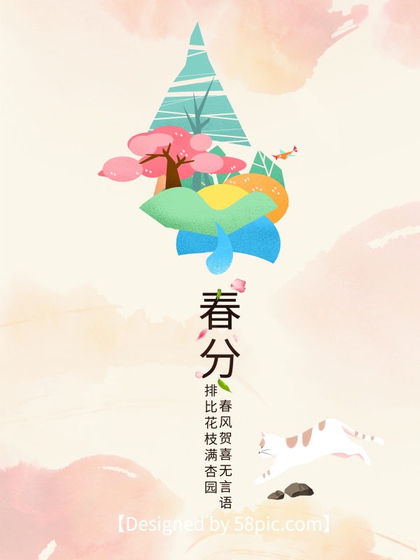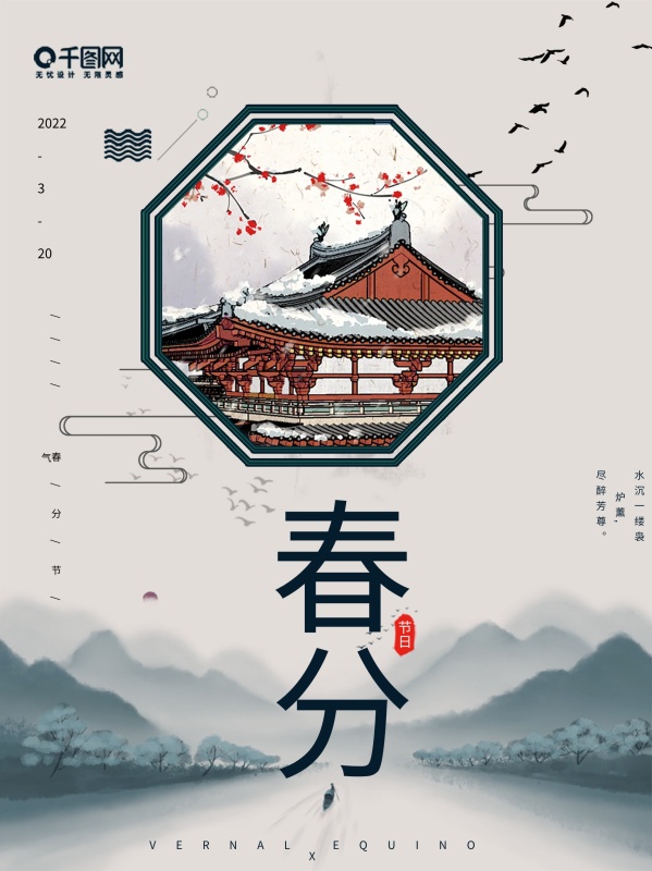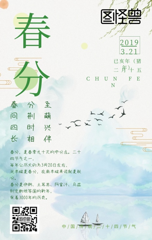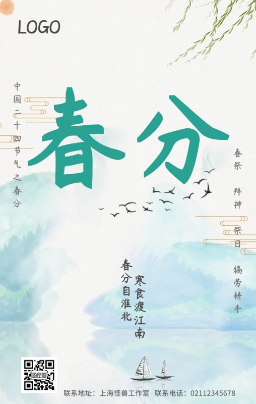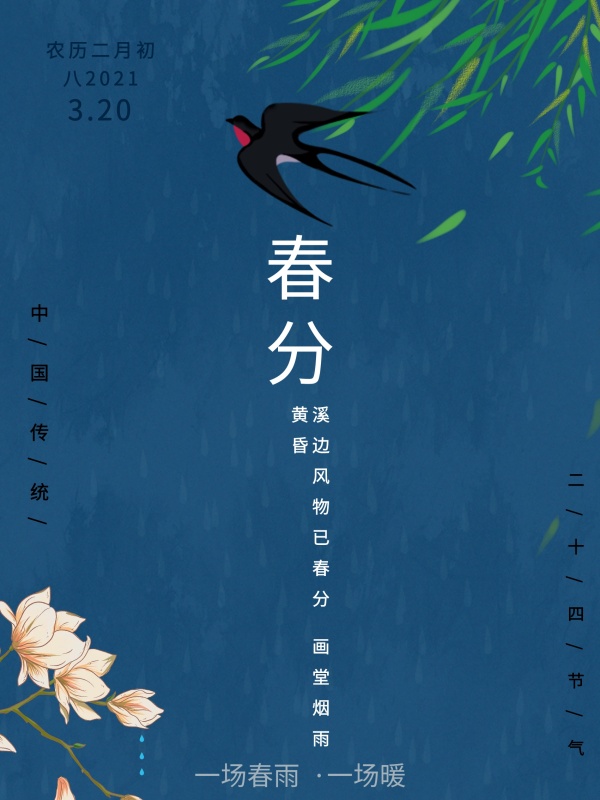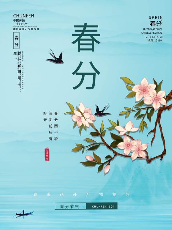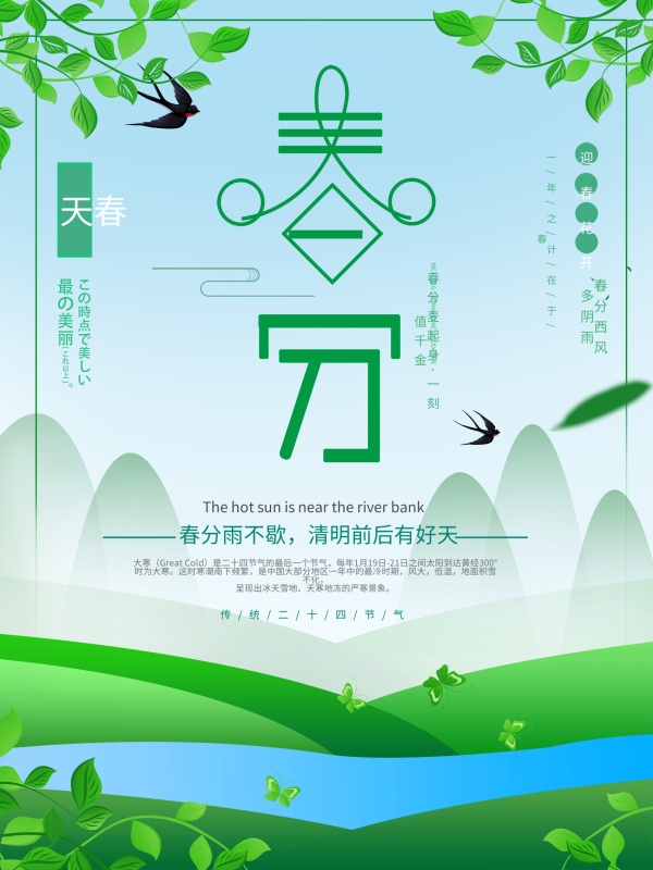 小清新中国风24节气惊蛰雨水春分立夏海报