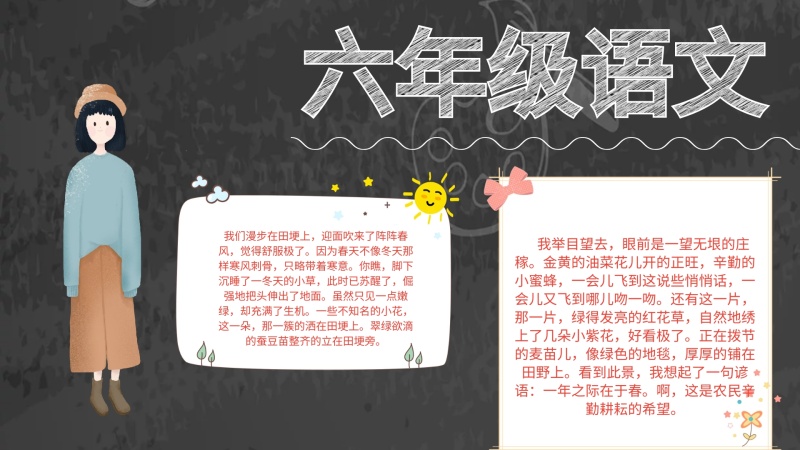 创意卡通可爱6年级语文手抄报海报