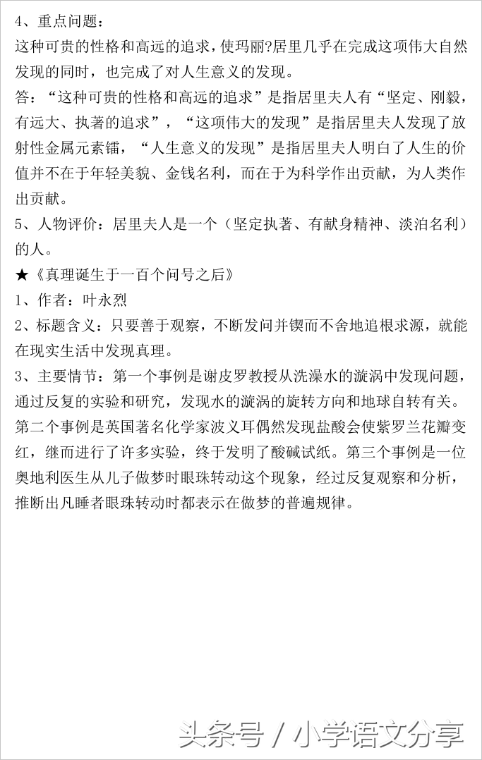人教版小学语文六年级上册重点课文知识点