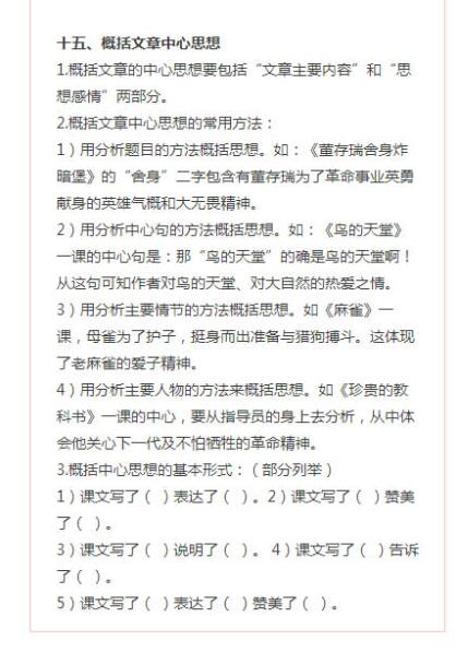 重点重点小学语文1-6年级阅读知识点汇总