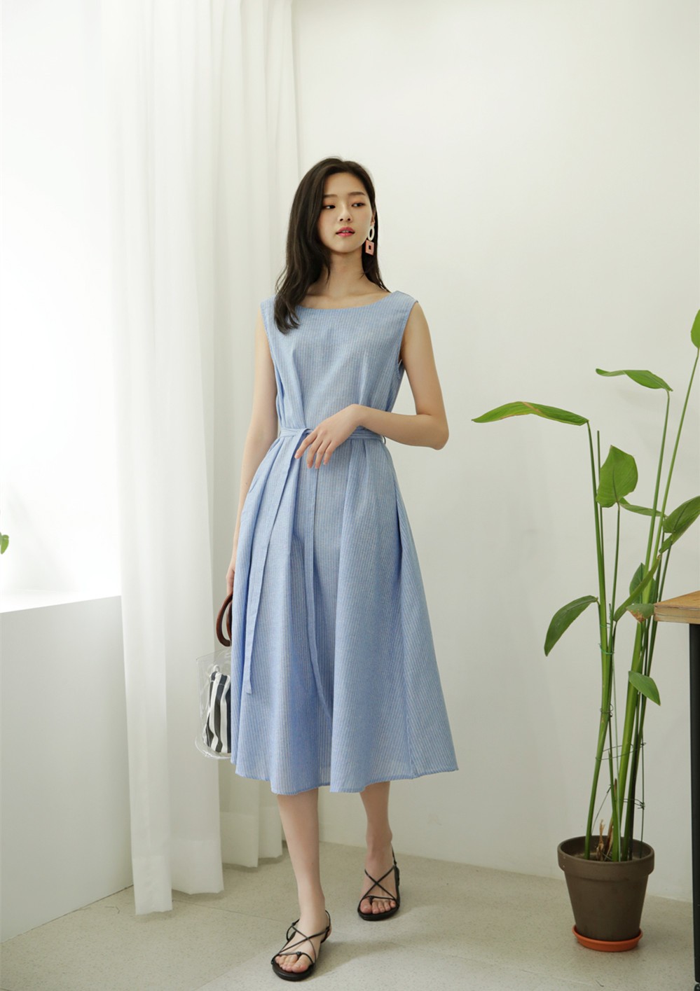 夏季新款长短不一宽松条纹衬衣裙时尚