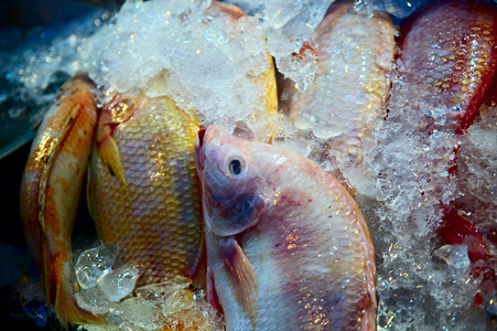 海水鱼冰在市场上
