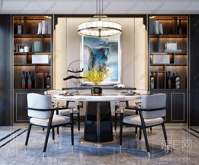 新中式餐桌椅组合- 建E网3d模型分享交.