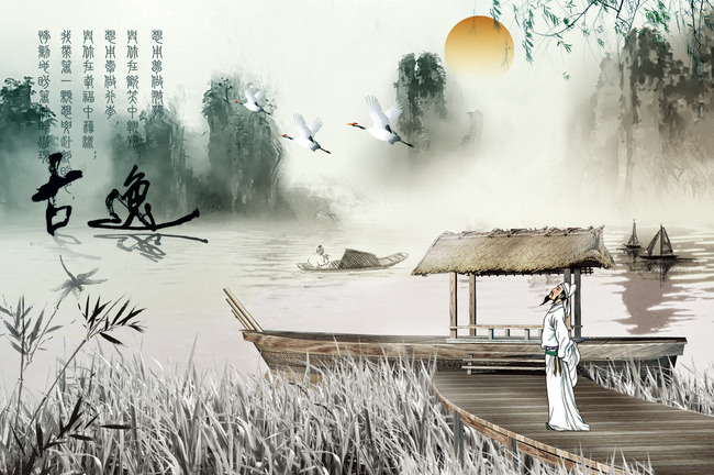 诗情画意李白乘舟将欲行中式背景墙_40167
