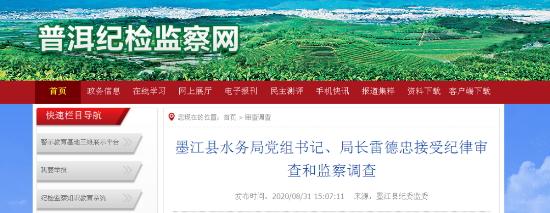 中纪委网站今日连发3名云南官员涉违纪被