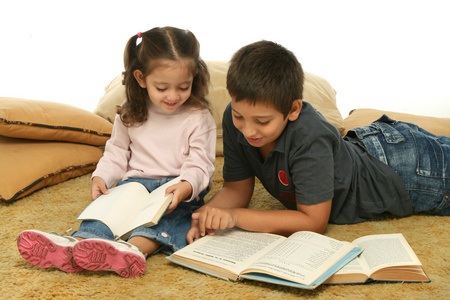聪明的亚洲女孩和男孩做家庭作业,印度姊