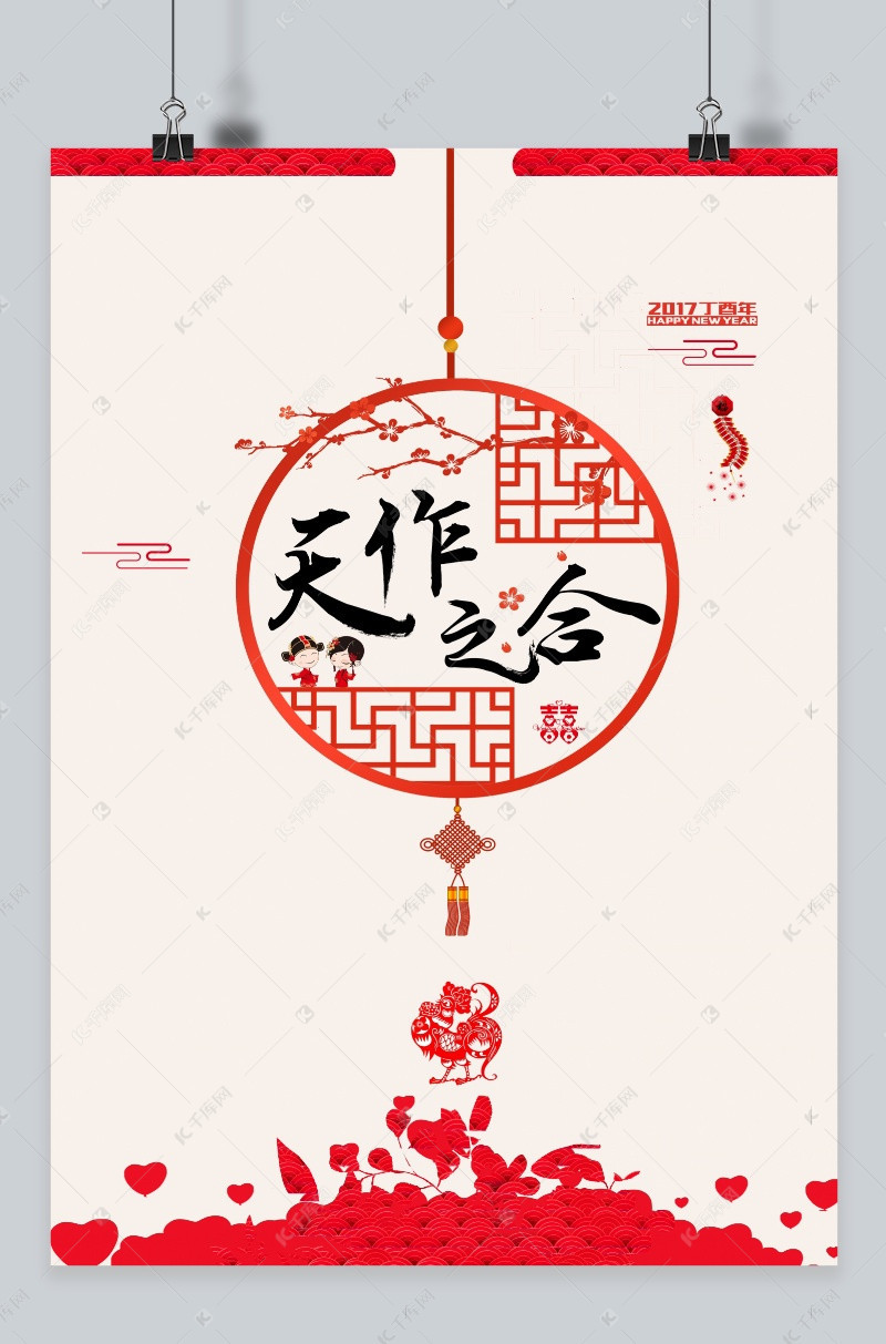 简约民族风天作之合婚庆海报