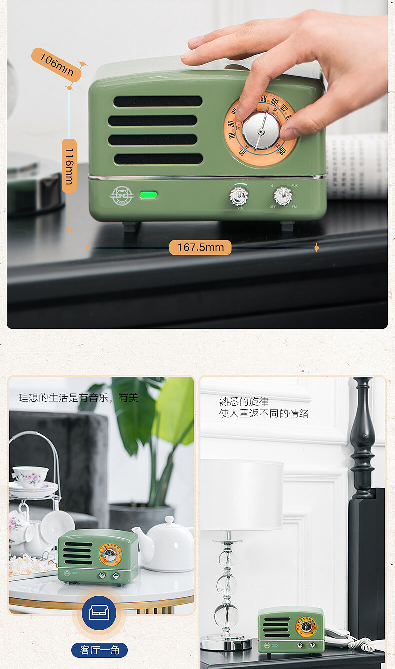 猫王Raidooo蓝牙音箱 | 高颜值复古设计,
