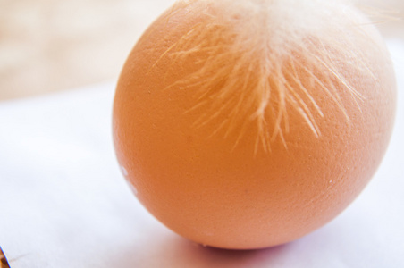 毛茸茸的爪子看着鸡蛋, 预计孵化另一个