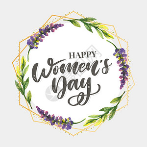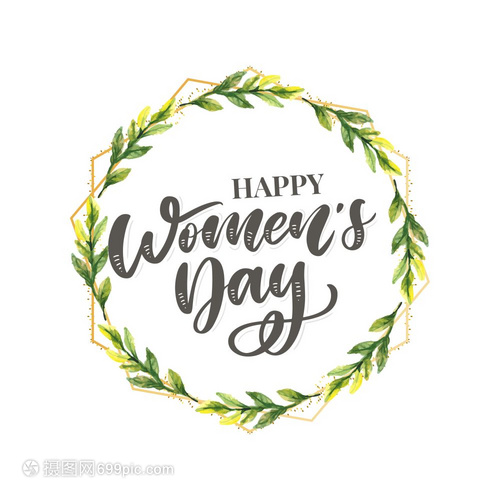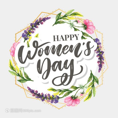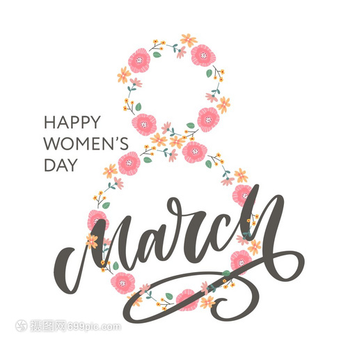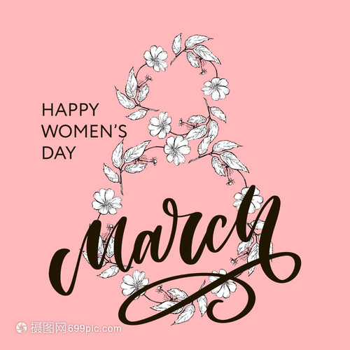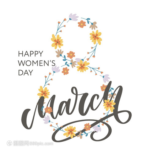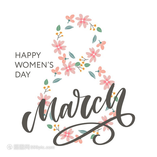妇女节快乐艺术书法英文字体贺卡设计元素