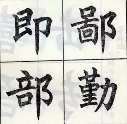 楷书中右偏旁欠字旁和见字旁的写法,及在