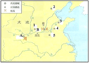 西周的都城A: .(2)请写出武王伐纣的地点B