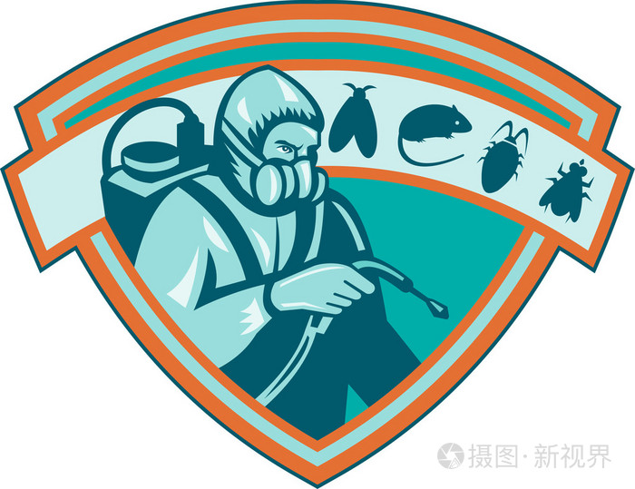 害虫控制概念与昆虫灭虫剪影平面矢量图