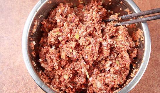 刚剁好的羊肉饺子馅(羊肉加葱姜加莲菜)