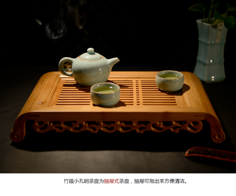 三千水 孟宗竹制抽屉储排水式功夫茶盘