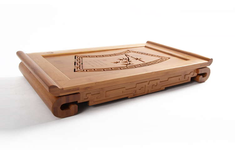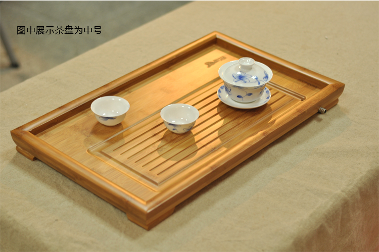 三千水 孟宗竹制排水式平板茶盘茶海 中号