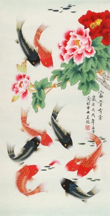锦鲤图、九鱼图的风水寓意解析,当代画家