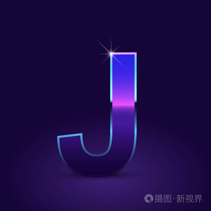 闪亮的金属80s 复古风格字母 j 大写字体在