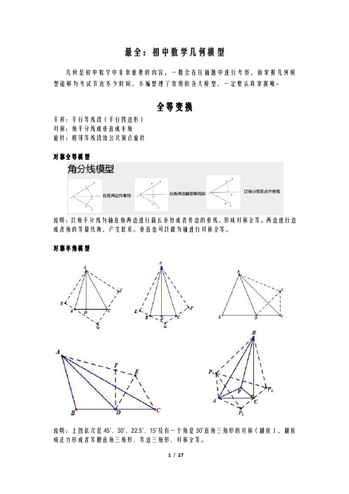 超全初中数学几何模型秘籍,快为你家孩子