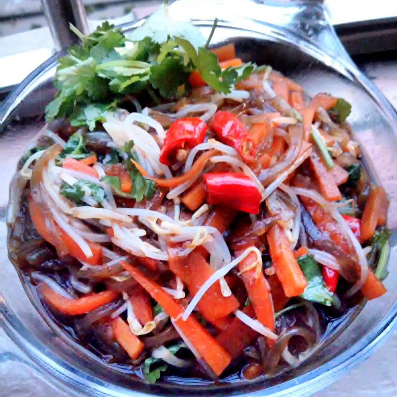 酸辣菠菜豆芽拌红薯粉