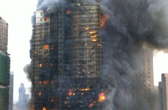 上海静安大火:住户爬上楼顶高呼救命(组图)