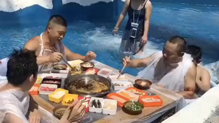 重庆人坐在冰桶里吃火锅,没有什么能够