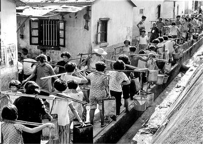 ▲彼时的香港市民挑水的场景。