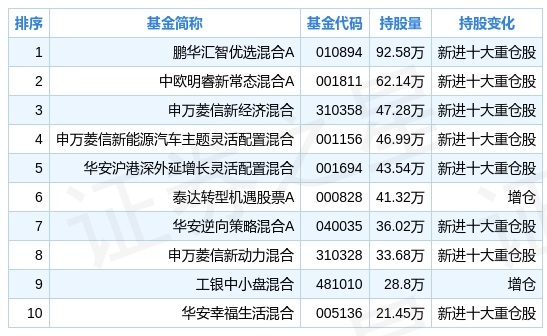 东方盛虹三季度持仓分析:基金合计持有2.38