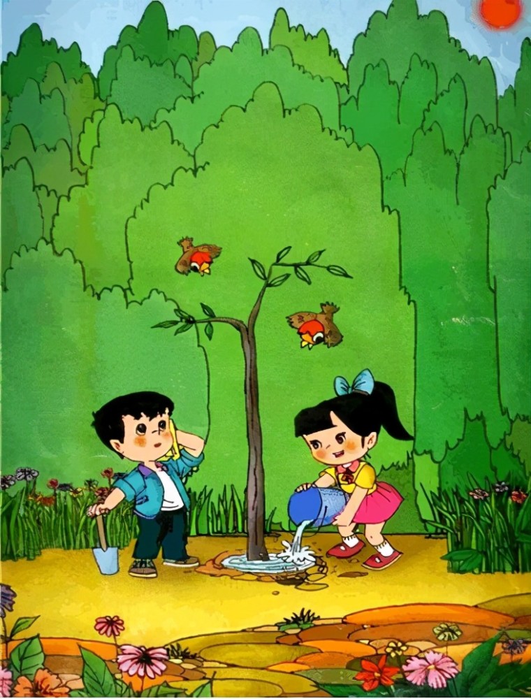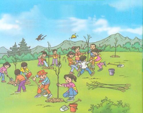 二年级作文欣赏:植树的看图写话4篇,从一个人植树到一群人植树
