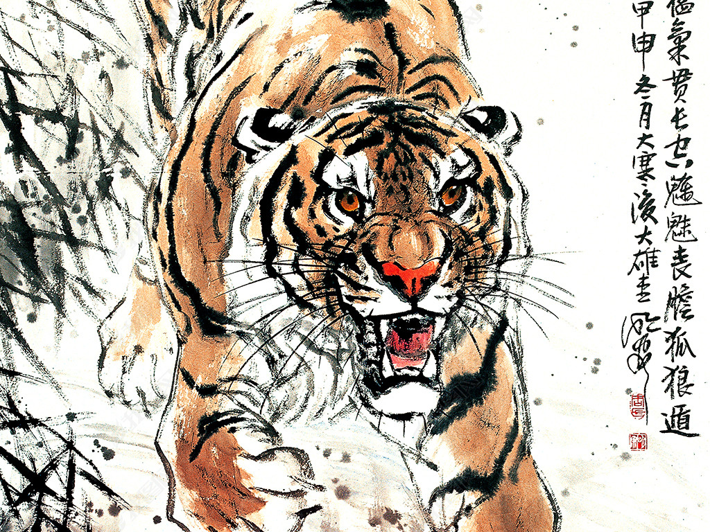 国风上山虎镇猛虎下山老虎画挂画客厅画水