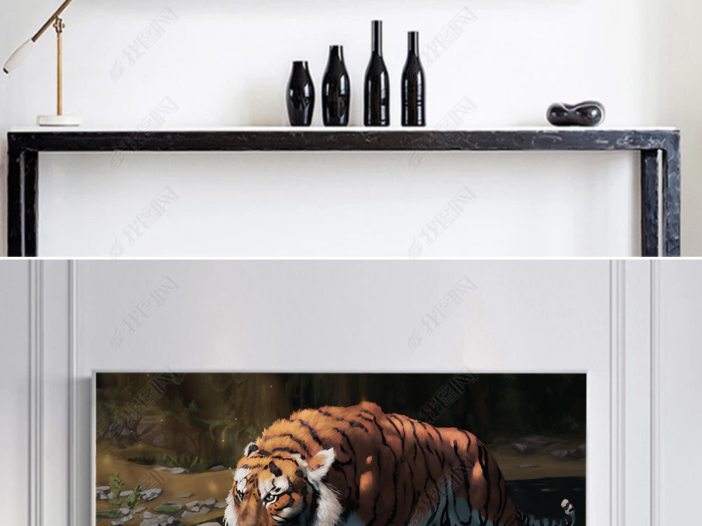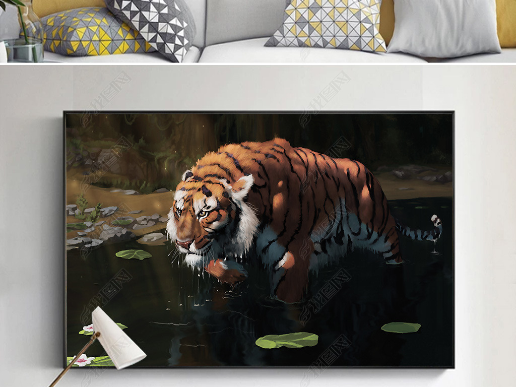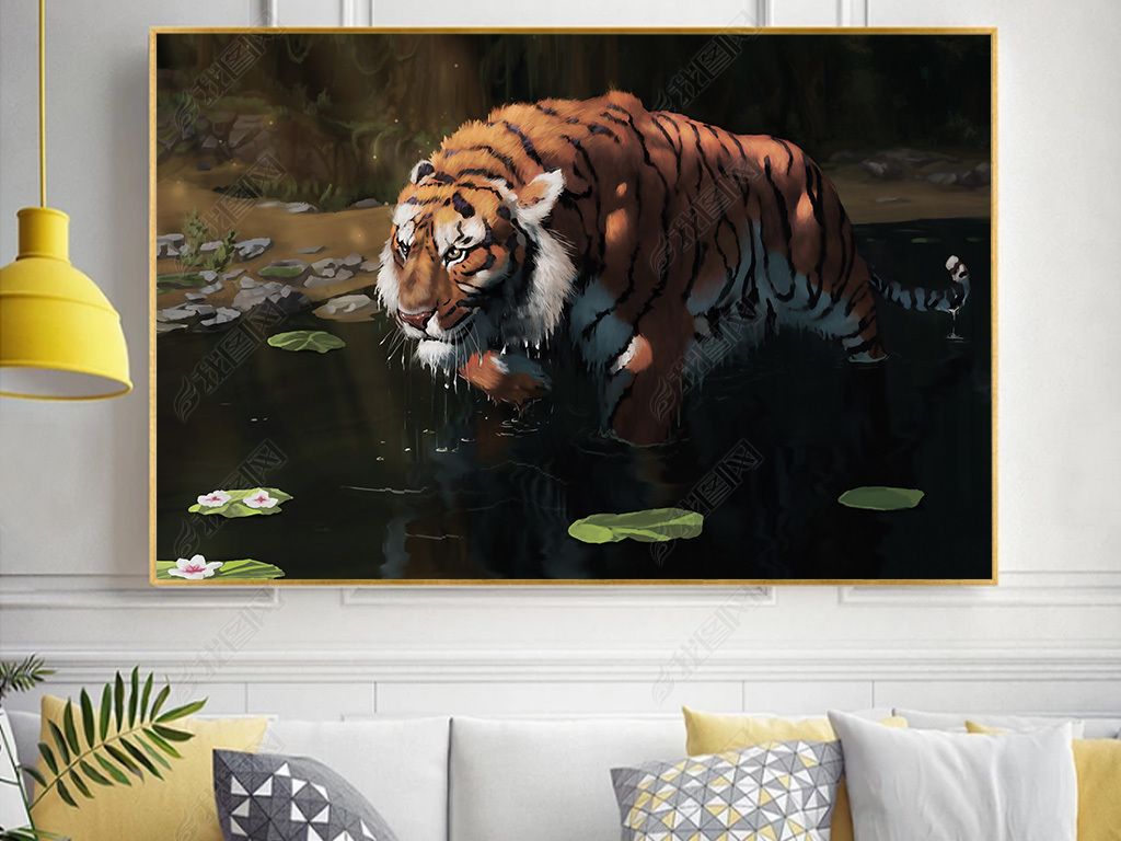 老虎下山猛虎虎威王者霸气电视沙发客厅背景