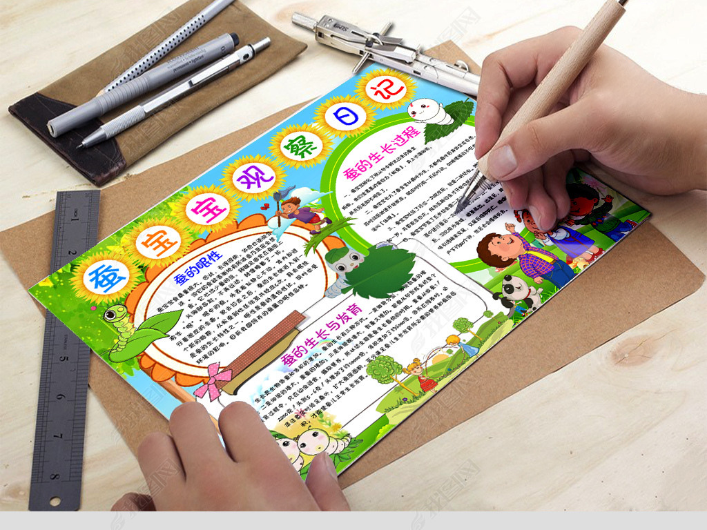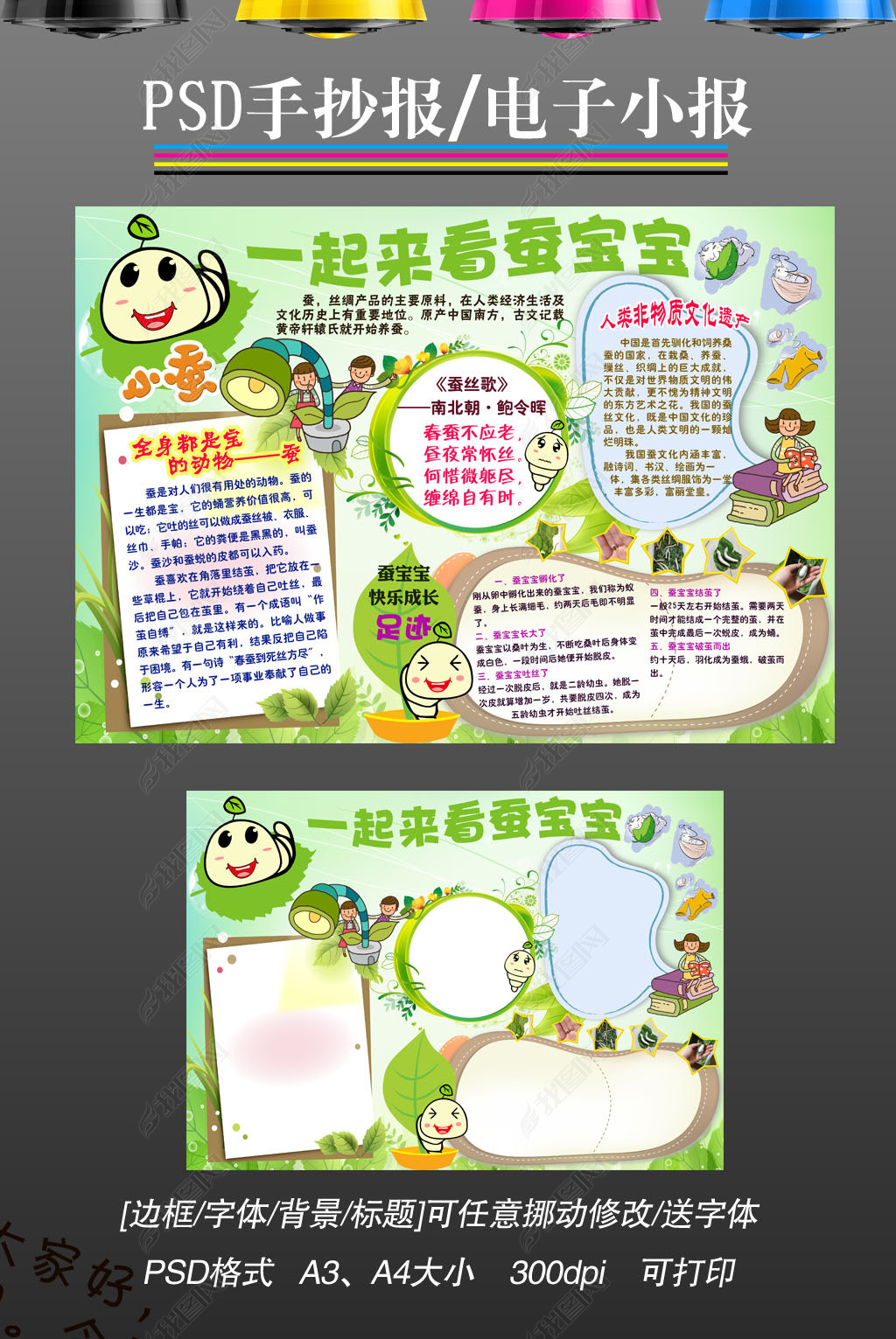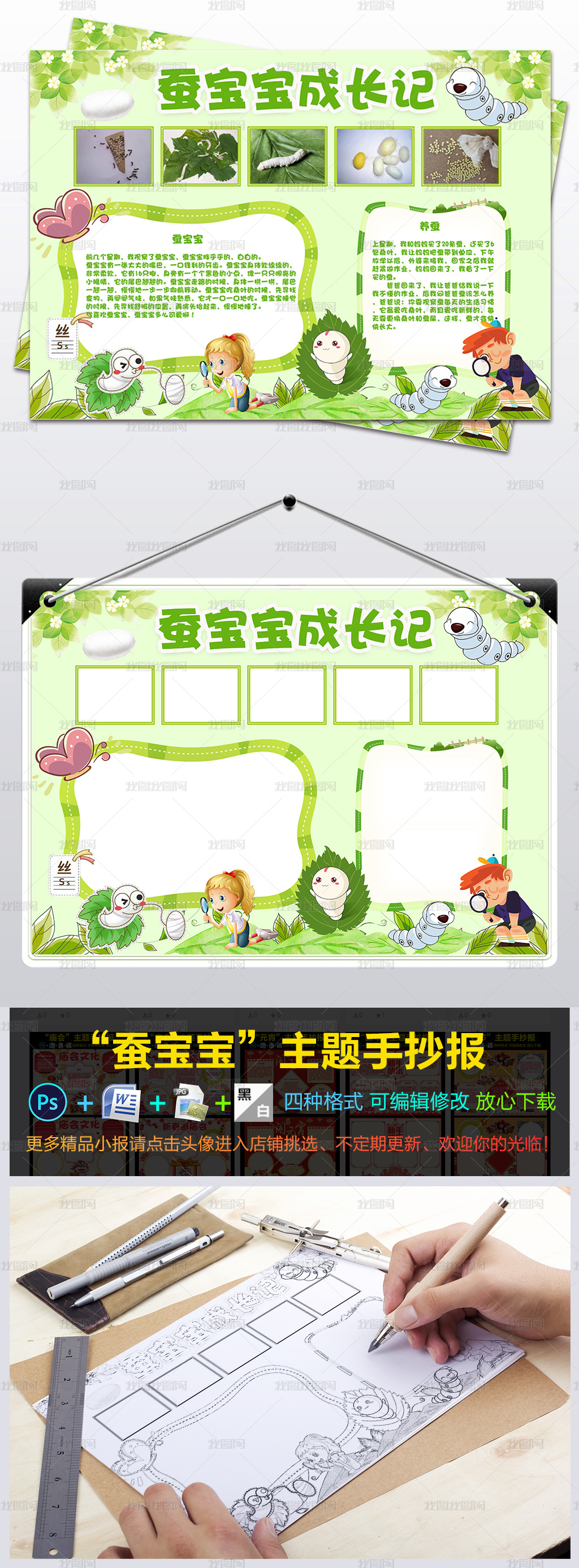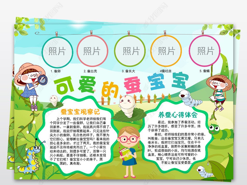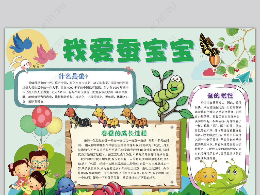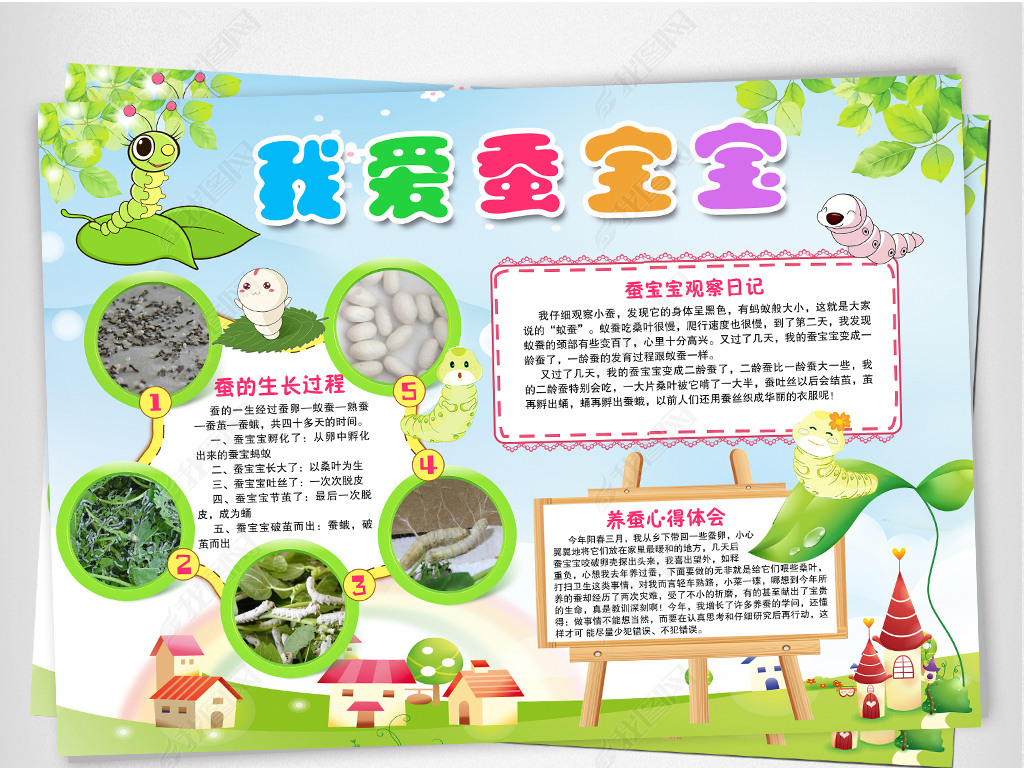 养蚕小报蚕宝宝成长记动物观察日记手抄小报素材下载-编号17909260-爱护动植物手抄报