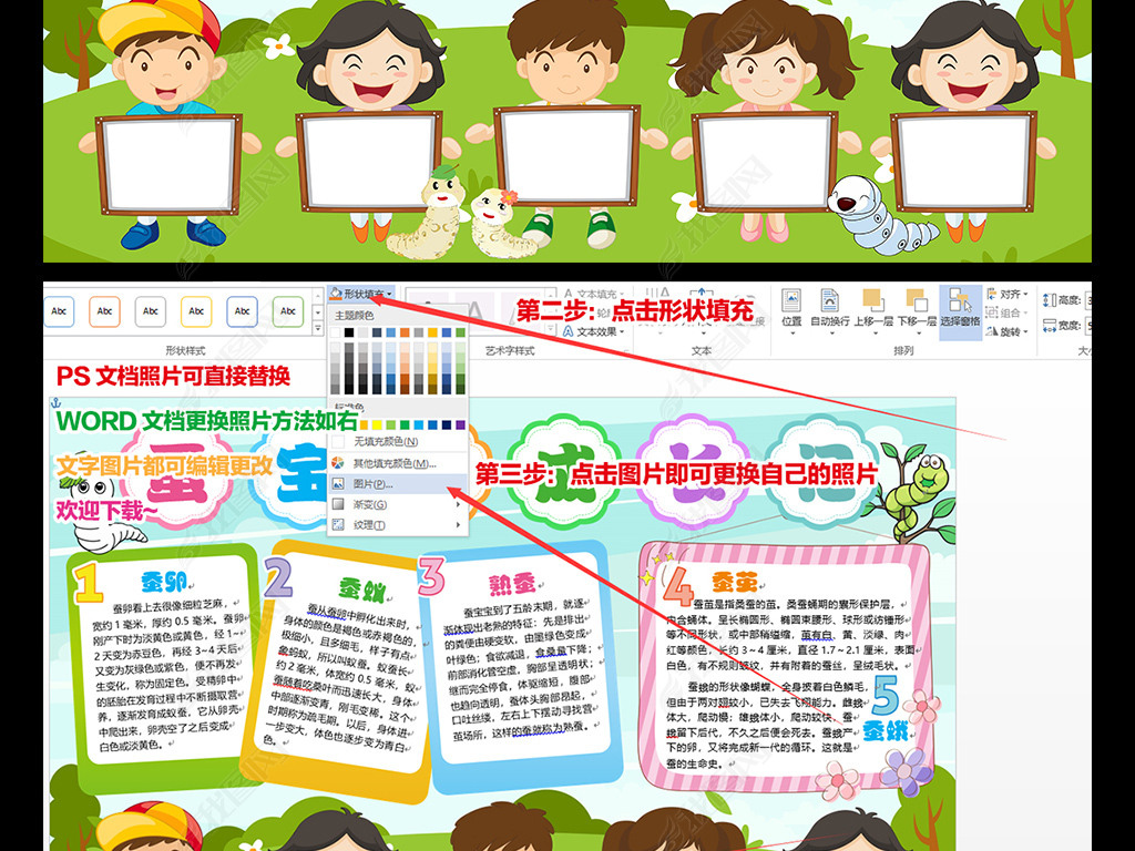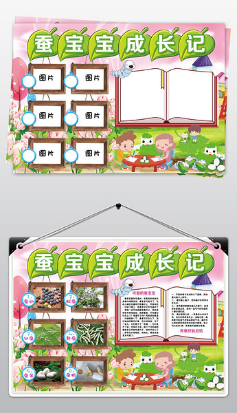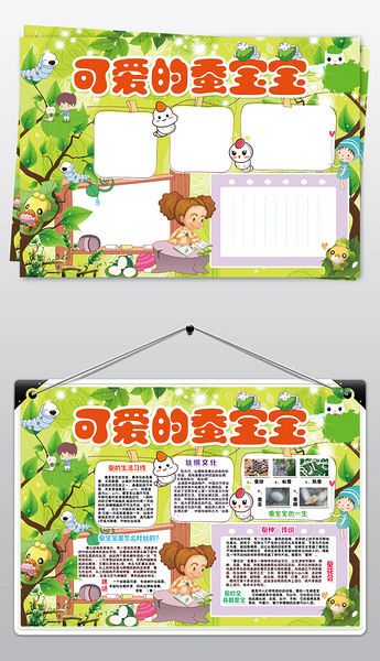 养蚕小报可爱的蚕宝宝手抄报观察日记电子小报素材