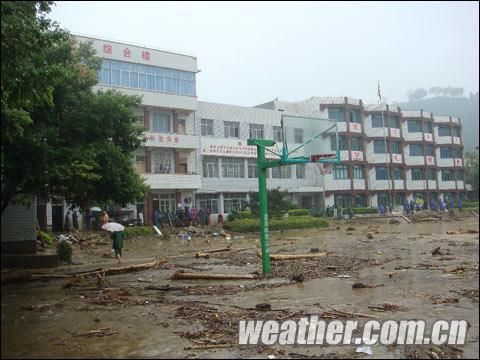 贵州望谟暴雨引发山洪 洪水冲垮学校围墙_
