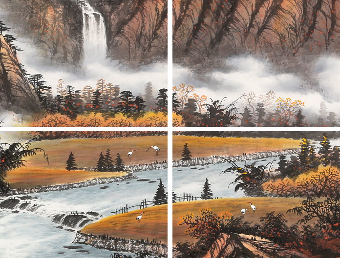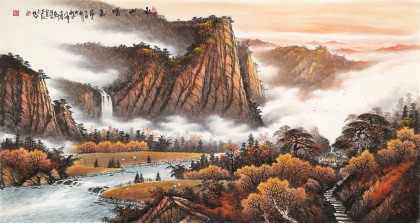 张慧仁 六尺聚宝盆山水画《秋山曙色》 -