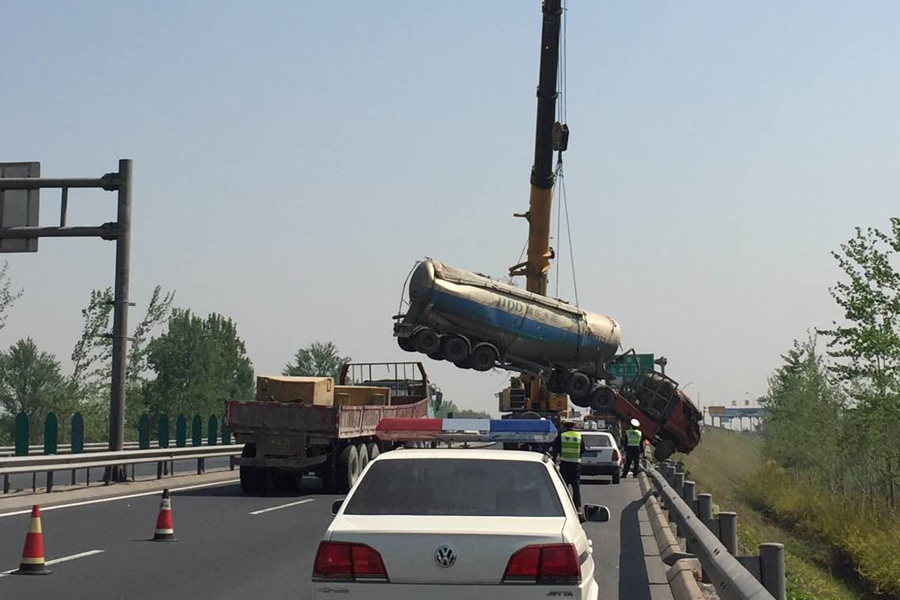 突发 | 昨京平高速一油罐车突漏油,结果···