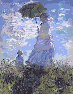 画diy 法国画家莫奈名家名画淡彩填色手绘画 撑阳伞的女人