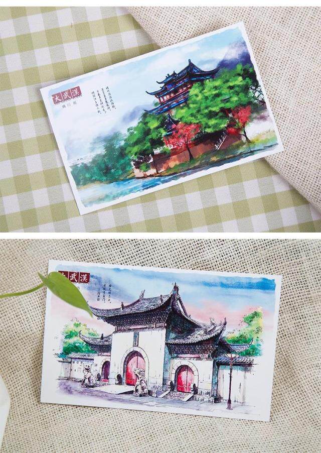 中国城市风景旅游明信片包邮湖北武汉原创手绘明信片纪念品卡片