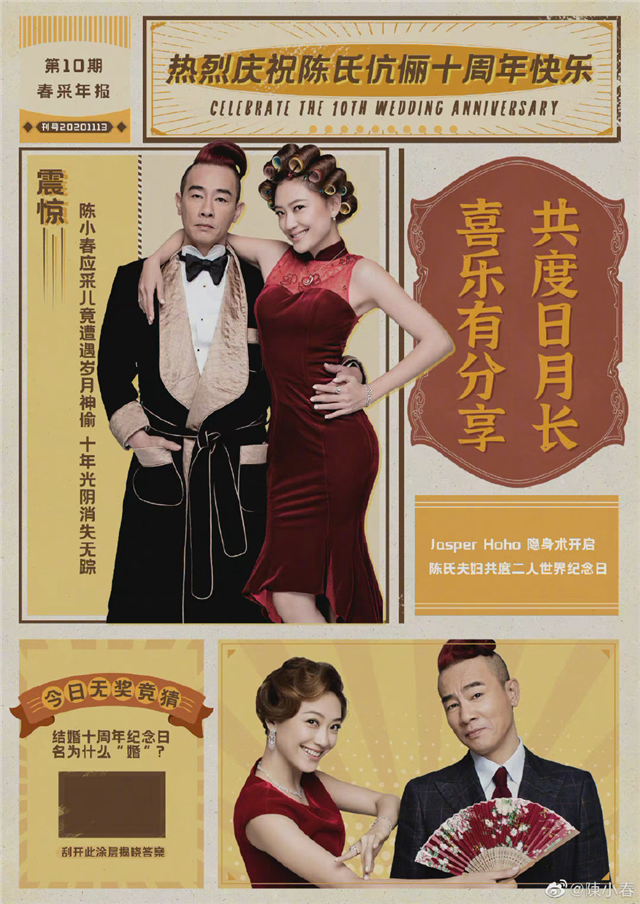 应采儿陈小春庆祝结婚十周年,相差十六岁