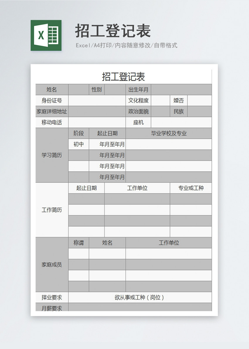招聘登记表格