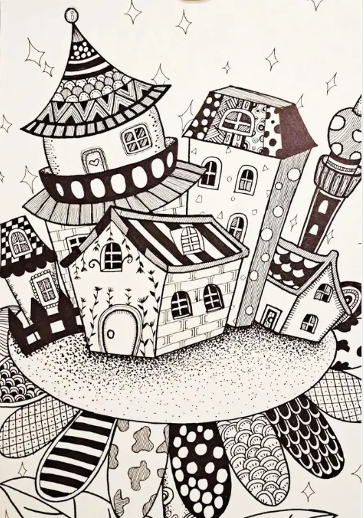 线描装饰#儿童画线描课资料##儿童创意手工##儿童画创意#