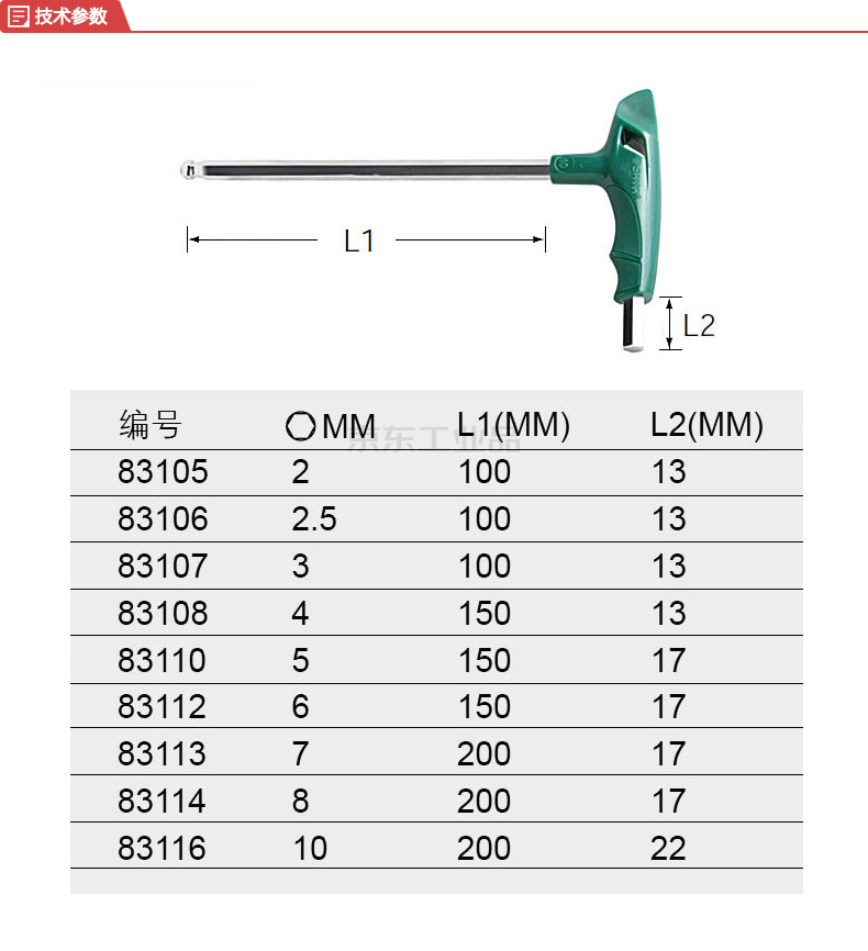 世达 T型球头内六角扳手7mm,12把\/盒;83113