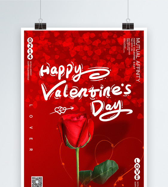 红色简约情人节纯英文海报