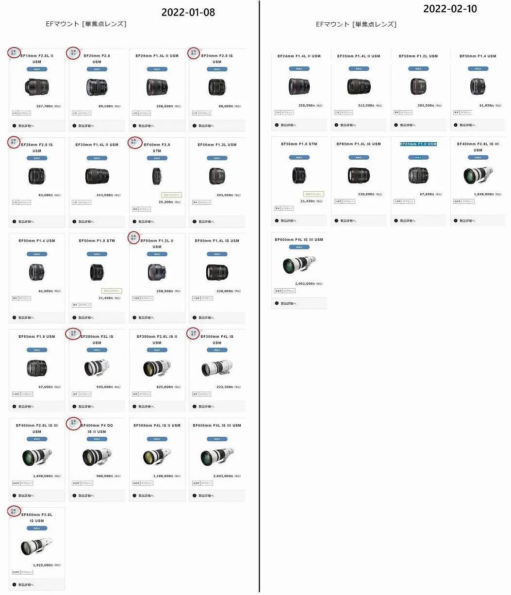 仅剩9支镜头 佳能官方删减12支EF单反镜头