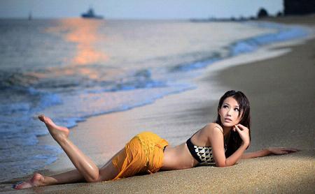 性感沙滩紧身潜水服运动衣短裤_韩国美女模特套图下载