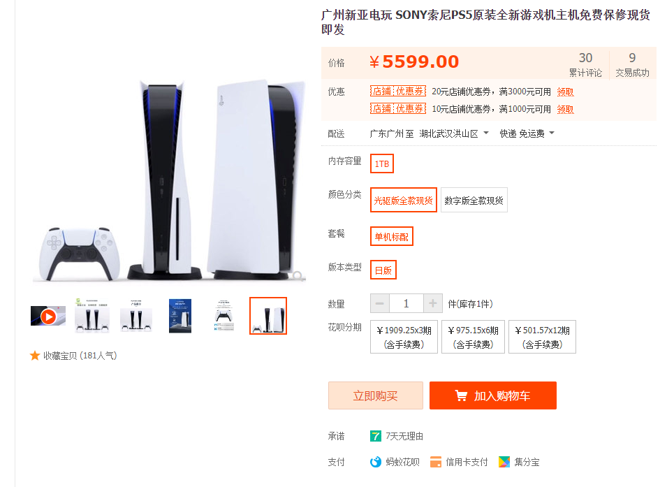 PS5港版光驱今日行情5299元,PS5\/PS4