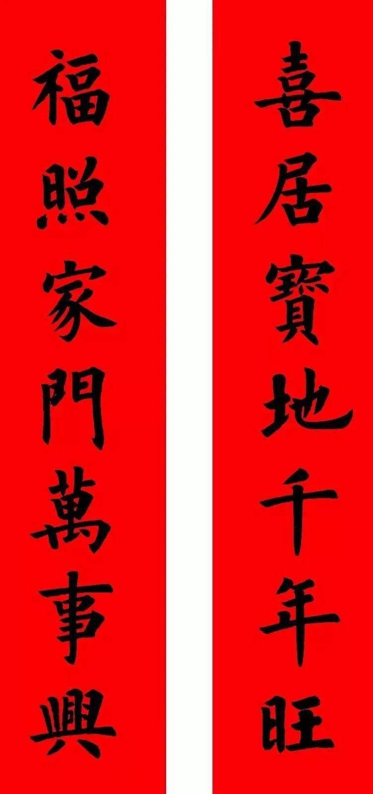 手写对联:喜居宝地千年旺,福照家门万事兴。