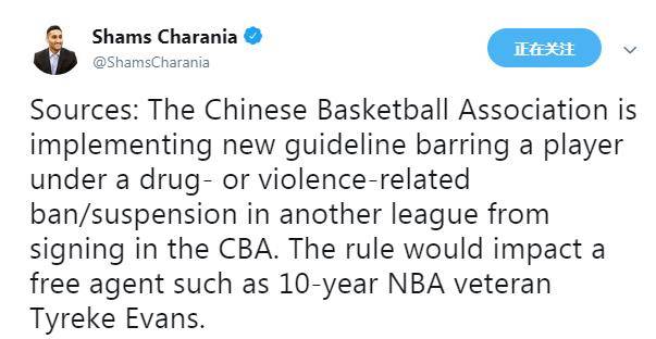 NBA名记:中国篮协将限制涉毒球员进入CBA