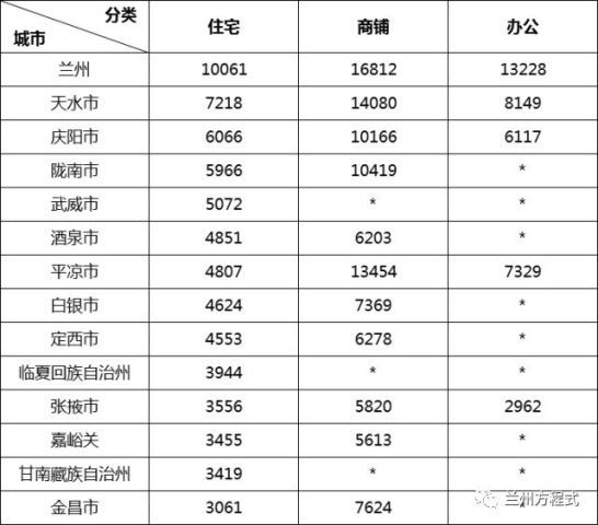 甘肃各市州房价表新鲜出炉!天水房价排名