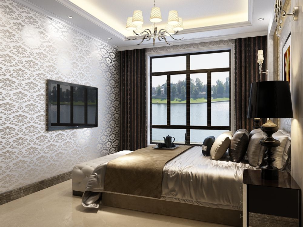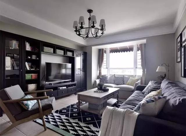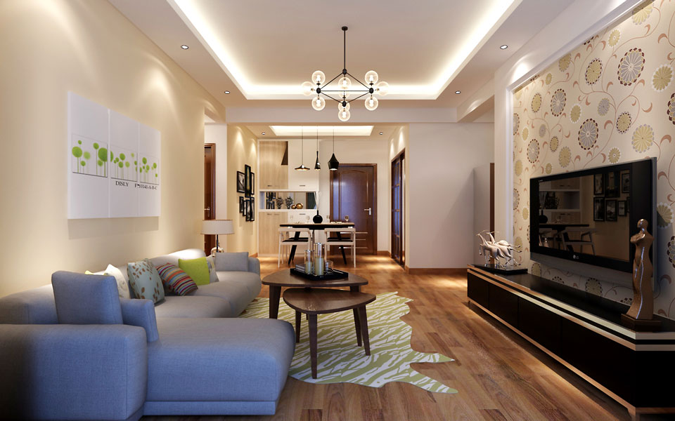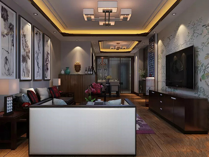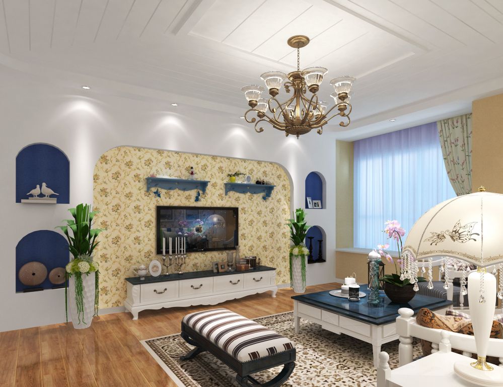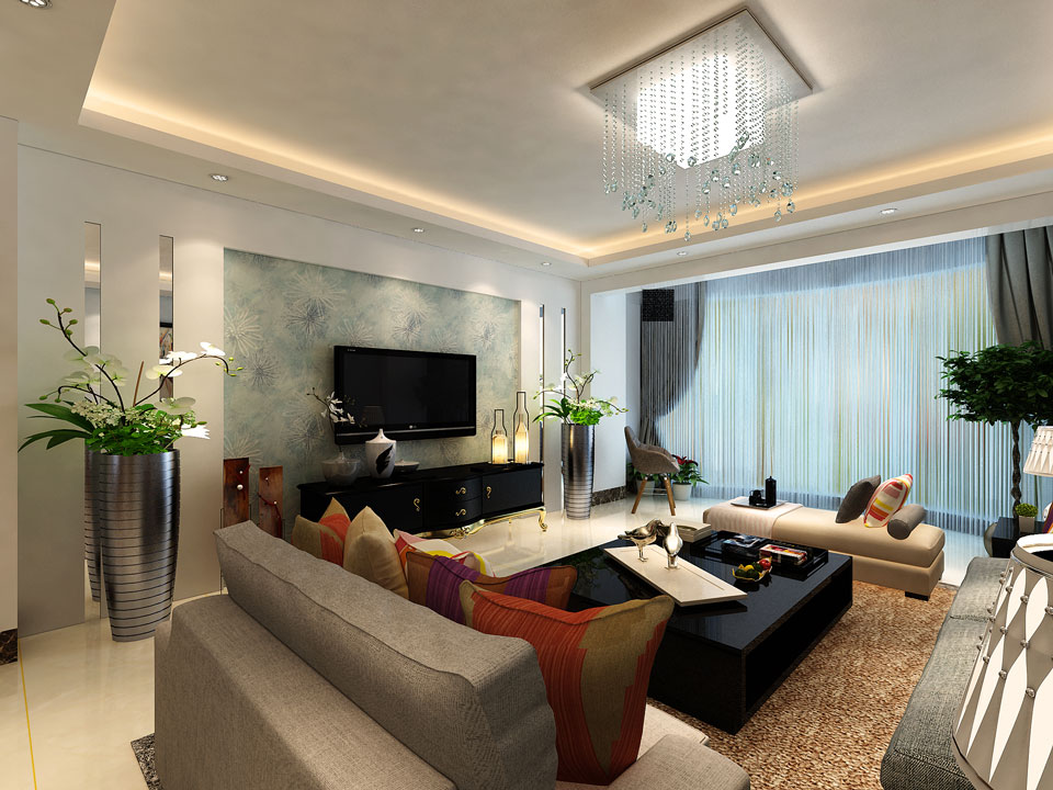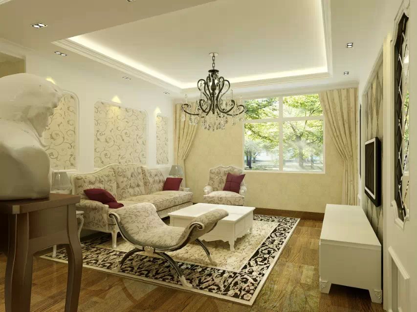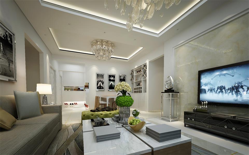 2017高级简欧客厅瓷砖电视墙装修效果图